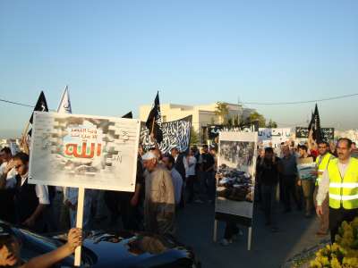 اجتمع مايزيد عن الف من انصار حزب التحرير في الاردن اليوم في 6:30 مساءا امام السفارة السورية للتنديد بجرائم النظام السوري ضد المدنيين في سوريا .