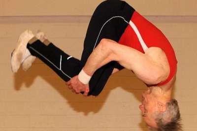 رغم أنه تجاوز الثمانين عامًا، فإن البريطاني "رون رودجر" قرر أن يحتفل بيوم ميلاده الـ82 بممارسة رياضته المفضلة وهي الجمباز ويلقبه معجبوه بـ"قرد القضبان"، بعد أن اعتزل المسابقات الدولية وقرر التفرغ للعمل كمدرب. ويمارس رودجر الذي يوصف بـ"قرد القضبان" بسبب شدة مهارته تمارينه مرتين أسبوعيًّا، فيمكنه عمل "شقلبات" في الهواء حتى في هذا السن بفضل ممارسته لهذه الرياضة على مدار 60 عامًا.