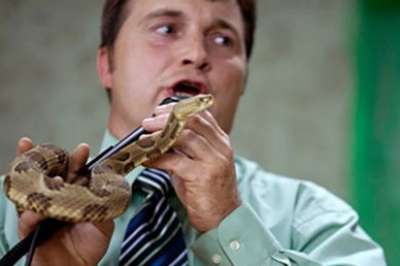 طباخ السم يتذوقه.. هكذا لقي قس أمريكي حتفه بعد أن قتلته أفعى دأب على استخدامها في مواعظه الدينية. وتوفي القس ماك راندال ولفورد – وهو قس في كنيسة بمدينة ماتوكا غرب ولاية فيرجينيا الأمريكية بعد عدة ساعات من تلقيه العضة المميتة.