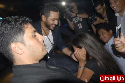وظهر حسني في الصور يرافقه طفلتان ,كما شارك احدى الفتيات المعجبات الغناء على المسرح.