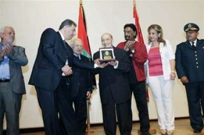 منحت سفارة دولة فلسطين في بيروت، أمس الاثنين، الفنان اللبناني وديع الصافي درع الرئيس محمود عباس، تقديرا لمواقفه المشرفة من القضية الفلسطينية، وتسخيره فنه الرفيع لخدمة هذه القضية النبيلة، وذلك خلال حفل اقامته السفارة واللجنة الوطنية الفلسطينية للتربية والثقافة والعلوم في قصر الاونيسكو في بيروت.