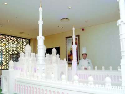 وقال الشاب، وهو شيف في أحد مطاعم إمارة دبي، إن صناعة هذا المجسم استغرقت شهرين من العمل المتواصل، إذ حرص على أن يخرج المجسم صورة طبق الأصل من المبنى الحقيقي، بالعدد نفسه للمآذن والقباب والأبواب.