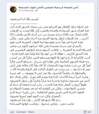 أدمن "المجلس العسكرى": سنتقم لجنودنا