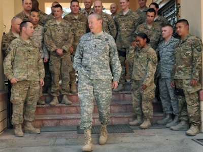 ووصل ديمبسي إلى أفغانستان الاثنين، حيث كان من المقرر أن يلتقي قائد قوات إيساف في أفغانستان.