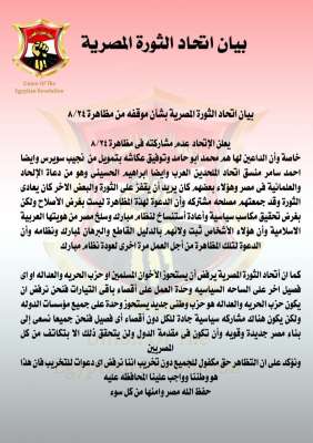 اتحاد الثورة المصرية مظاهرات 24 اغسطس يقف وراءها ساويرس واتحاد الملحدين العرب