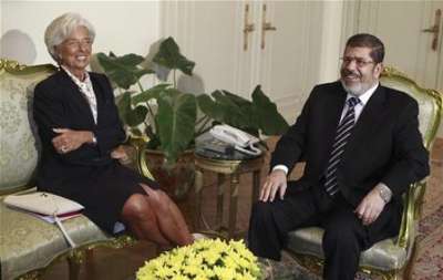 وقد اعربت مديرة صندوق النقد الدولي كريستين لاغارد، التي قدم اليها مرسي خلال زيارتها مؤخرا الى القاهرة طلبا رسميا للحصول على قرض، عن رغبة الصندوق في ان يواكب مصر على طريق نهوضها الاقتصادي.