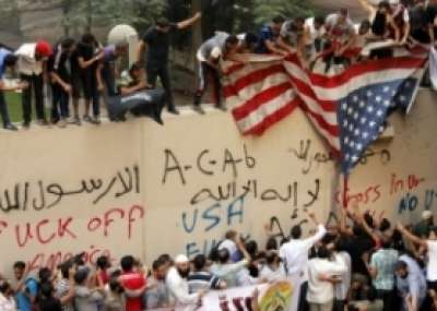 وتوافد آلاف المتظاهرين على مقر السفارة الأمريكية، ونجحوا في اقتحامها وإنزال علم الولايات المتحدة وإحراقه.