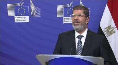 قال الرئيس المصري محمد مرسي نحن "مصممون" على رحيل الرئيس السوري بشار الأسد، في مؤتمر صحفي في بروكسل الخميس في أول زيارة يقوم بها لأوروبا منذ أن أصبح أول رئيس مصري منتخب انتخابا حرا في يونيو الماضي، بحضور رئيس المفوضية الأوروبية خوسيه باروسو. وشدد الطرفان مرسي وباروسو على ضرورة تغيير نظام الرئيس السوري بشار الأسد، حيث قال باروسو: " لا بد أن يرحل الأسد"، من جانبه أكد مرسي ذلك بقوله: "نحن مصرون على أن يتغير النظام في سوريا" و"رحيل الأسد أمر تم الاتفاق عليه.. حيث لا مجال للحديث عن إصلاحات في سوريا، النظام يجب أن يتغير".