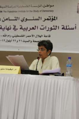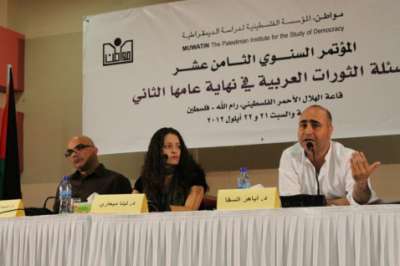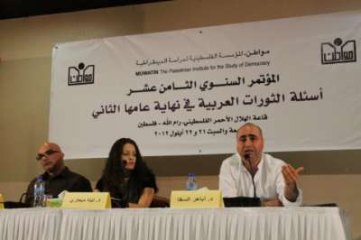 لليوم الثاني على التوالي، استمرت وقائع المؤتمر السنوي الثامن عشر للمؤسسة الفلسطينية لدراسة الديمقراطية "مواطن" تحت عنوان "أسئلة الثورات العربية في نهاية عامها الثاني" في جمعية الهلال الأحمر الفلسطيني في رام الله. وتم توزيع الوقت على ثلاث جلسات، أولاها "أسئلة الذات والهوية في خطاب الثورة" وثانيها "المرأة والثورة" وثالثها التي اختتمت وقائع المؤتمر كانت بعنوان "التحديّات الكبرى للمرحلة الانتقالية".