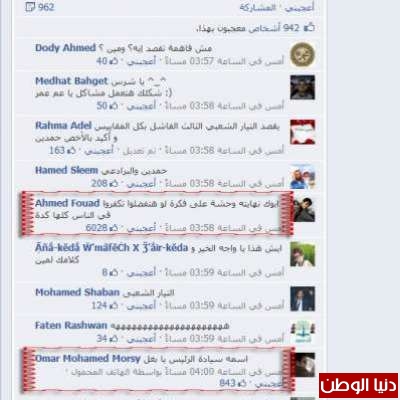 صورة .. نجل الرئيس مرسى لناشط عبر الفيس بوك : اسمه الرئيس يا بغل