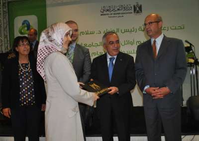كرمت وزارة التعليم العالي بالتعاون مع شركة الاتصالات الفلسطينية "جوال " الطلبة المتفوقين في مؤسسات العالي لعام 2012 ، وذلك خلال حفل اقيم في قاعة " الليدرز" في الماصيون بحضور رئيس الوزراء د.سلام فياض ووزير التعليم العالي د.علي الجرباوي والسيد معن ملحم مدير شركة الاتصالات الفلسطينية "جوال "، وعدد من اهالي الطلبة المتفوقين اضافة لحضور مميز لوسائل الاعلام .