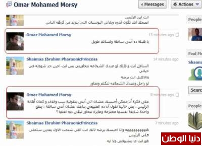 نجل مرسي يهدد فتاة على فيسبوك بالحبس وينعتها ب"السافلة وطويلة اللسان" .. صورة