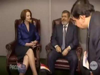 شاهد الفيديو:قناة استرالية تتهم الرئيس مرسي بلمس اجزاء حساسة من جسده اثناء لقائه برئيسة وزراء استراليا