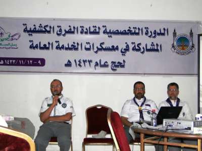 أكد القائد وليد أبو بكر أن مشاركة القادة والكشافة في معسكرات الخدمة العامة التي تقيمها جمعية الكشافة العربية السعودية لخدمة ضيوف بيت الله الحرام هي فخر وشرف ومسؤولية جاء ذلك في معرض حديثه للقادة المشاركين في الدورة التخصصية لقادة الفرق الكشفية .