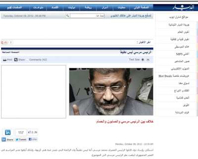 إنتقدت جريدة الديار اللبنانية الرئيس المصري محمد مرسي بشكل مبالغ حيث أكدت الجريدة فى خبر لها بعنوان " الرئيسمرسي ليس نظيفاً " , والعنوان الفرعى " خلاف بين الرئيس مرسي والصابون والحمام ".