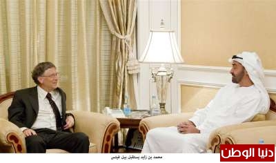 وثمن ولي عهد أبوظبي جهود وإسهامات بيل غيتس الانسانية وأشار إلى أنه علم أن بيل غيتس يعمل في ثلاث دول ينتشر فيها مرض شلل الأطفال حيث رصد ملياري دولار أمريكي لمكافحة المرض في نيجيريا وباكستان وأفغانستان.