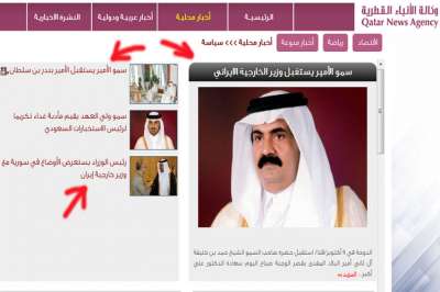 برز خبران على موقع وكالة الأنباء القطرية ليسا كبقية الأخبار التي تتصدر صفحات مواقع الوكالة الأنباء الرسمية؛ فالخبر الأول أشار إلى استقبال أمير قطر الشيخ الشيخ حمد بن خليفة آل ثاني لوزير الخارجية الإيراني علي أكبر صالحي، وأما الخبر الآخر فأشار إلى استقبال أمير قطر للأمير بندر بن سلطان بن عبدالعزيز رئيس جهاز الاستخبارات بالمملكة العربية السعودية.