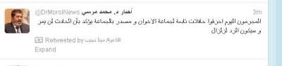 على موقع التواصل الاجتماعي "تويتر" توعدت الرئاسة المصرية على الحساب الخاص بها ، من قاموا بإحراق حافلات الإخوان ، واصفة إياهم بالمجرمين. مؤكدة على أن الحادث لن يمر مرور الكرام وسيكون الرد زلزال،وذلك وفقا لما نقله موقع "الأقباط المتحدون"المصري.