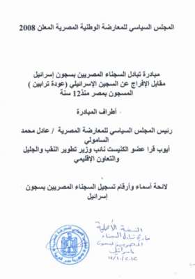و اصدر المجلس السياسى للمعارضة المصرية الوطنية بيانا عاجلا قال فيه سنكشف يوم الاثنين 15_10_2012 عن لائحة الأسماء الثلاثية للسجناء المصريين بسجون اسرائيل وارقام