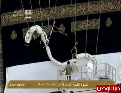 وبدأت مراسم تغيير كسوة الكعبة المشرفة عقب صلاة الفجر، على يد 30 عاملاً من مصنع كسوة الكعبة المشرفة بمكة المكرمة.