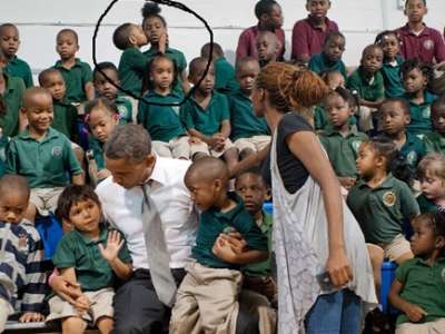 كان لتلك الصورة التي إلتقطها مصور "أسوشييتدبرس" أمس الأربعاء أن تغطي على وهج الحضور الرئاسي للرئيس الأمريكي باراك أوباما , هذا الطفل البادي في الصف الأخير في الصورة وجد من يثير اهتمامه أكثر بكثير من باراك أوباما، وهي زميلته في مدرسة ابتدائية زارها الرئيس الأمريكي في فلوريدا ليتفقدها، وجعله كأنه لم يكن.