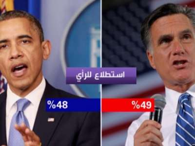كشف استطلاع للرأي أجرته “واشنطن بوست” وشبكة “أيه بي سي” تصدر رومني بنسبة 49% من الأصوات مقابل 48% لأوباما.