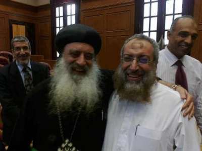 وتابع الشيخ حديثه قائلا: وأثناء وقوفنا جاء أيمن نور، وقال مستغربا "إيه دا (ما هذا) الشيخ ياسر يكلم الأنبا بولا"، قلت له "وفيها ايه"، فرد: "دي عايزة (هذه تحتاج) صورة"، قلت له: "صورها يا سيدي".