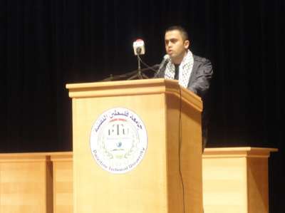 نظم مجلس الطلبة وحركة الشبيبة الطلابية في جامعة فلسطين التقنيه خضوري مهرجان خطابي ومعرض صور احيائاً لذكرى رحيل القائد الشهيد ياسر عرفات وذلك في مسرح الشهيد ياسر عرفات بجضور حشد غفير من الطلبة والموظفين بالجامعة