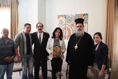 سيادة المطران عطاالله حنا رئيس اساقفة سبسطية للروم الارثوذكس قدم اليوم التهنئة لرئيسة بلدية بيت لحم المنتخبة المربية فيرا بابون ولكافة اعضاء المجلس البلدي المنتخبين متمنيا لها التوفيق والنجاح في خدمة مدينة الميلاد التي بدأت استعداداتها لاستقبال الفترة الميلادية المباركة.