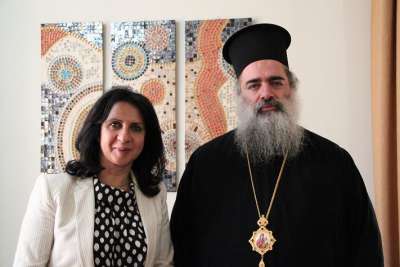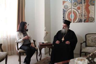 المطران عطاالله حنا يهنئ رئيسة بلدية بيت لحم المربية فيرا بابون