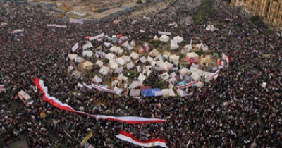 متظاهرو التحرير يشعلون النيران فى صورة "مرسى" ويقولون "بيع بيع الثورة يا بديع"