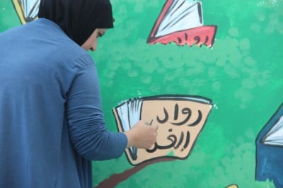 الفنانة التشكيلية منار نعيرات المسؤولة عن رسم الجداريات أكدت أن الرسم من أفضل الوسائل التي تحفز وتشجع على المطالعة والقراءة وحب التعليم، بالاضافة الى اللمسة الجمالية التي تضفيها على المكان