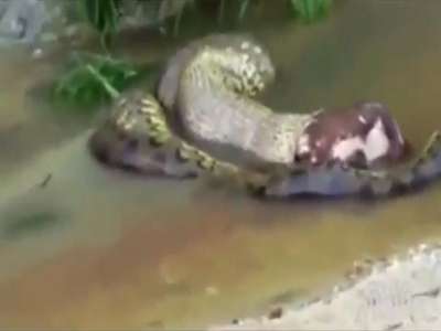 أكثر من 624 ألفاً شاهدوا في 5 أيام فيديو وضعه ملتقطوه في "يوتيوب" لأفعى "أناكوندا" الأكبر في العالم وهي "تتقيأ" بقرة وتلفظها في النهر بعد أن ابتلعتها بالكامل في منطقة مجاورة لغابات الأمازون بالشمال البرازيلي.