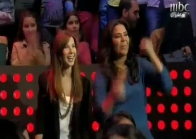 وسلط المخرج الكاميرا على نانسي عجرم بينما كان يعلن مقدم البرنامج محمد كريم عن تواجدها برفقة مدير أعمالها جيجي لامارا، وسط تشجيع كبير من الجمهور.