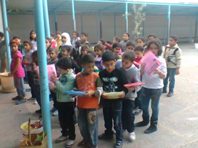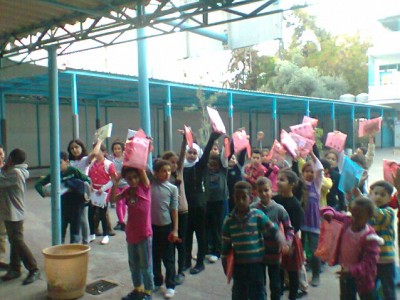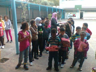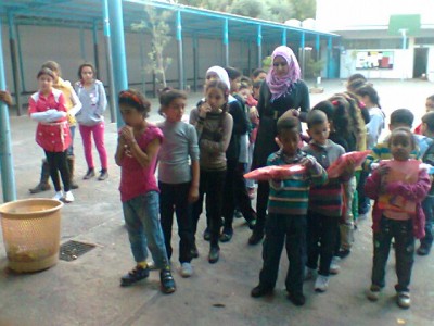 جمعية الكشافة و المرشدات الفلسطينية توزع قرطاسية للاطفال الفلسطينيين القادمين من سوريا