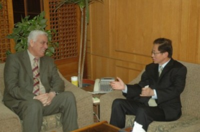 استقبل اللواء جمال إمبابى محافظ الاسماعيلية بمكتبة مستر / كيم يونج سو سفير دولة كوريا لدى القاهرة والسيدة حرمه خلال الزيارة التى قام بها السفير لمحافظة الاسماعيلية ضمن سلسلة الزيارات الميدانية لمختلف محافظات الجمهورية للتعرف على معالمها وبحث سبل تعزيز العلاقات بين الجانبيين