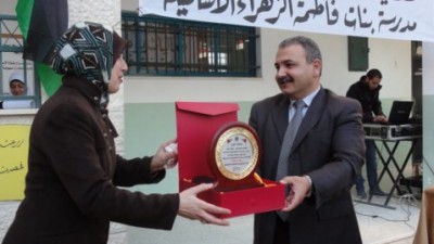 كلمة مديرة المدرسة المستضيفة سمر عبد القادر بدأت بالإشارة أن هذا الإحتفال جاء مواكبا ً لمناسبتين مميزتين أولاهما إحتفال شعبنا الفلسطيني بتحقيق إنجازه التاريخي وتتويجه لنضالات هذا الشعب وتضحياته وخط حروفها الرئيس الراحل الشهيد ياسر عرفات فكانت الدولة الفلسطينية والثانية في يوم المعلم الفلسطيني شاكرة تلك الأيادي التي ساهمت في إنجاح هذا الإحتفال وخاصة المرحومة المربية التي غادرتنا رحمها الله إبتسام ذياب ,