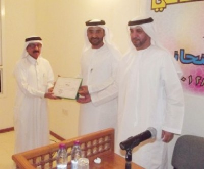 وفي ختام الأمسية قام الأستاذ محمد ناصر عبيدان الأمين العام للنادي بحضور سعادة سلطان الذيب الكتبي القائم بالأعمال في سفارة الإمارات بالدوحة؛ بتكريم الشاعر الظنحاني وتسليمه شهادة تقدير ودرع العضوية الشرفية.