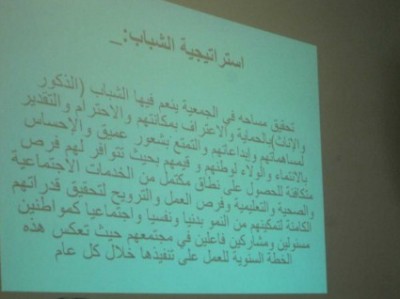 والأفكار للعام القادم 2013م، جاء ذلك خلال اجتماعهم السنوي الثاني الذي عقدوه في مقر الجمعية صباح اليوم الأحد بحضور مدير الفرع فيصل أبو صالح، وأمين سر الهيئة الإدارية أيمن حنتش، ومنسق المحافظة محمود أبو ذياب، ومنسق لجنة قلقيلية نضال البستنجي، ومنسقة الشباب هناء أبو شهاب.