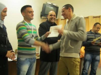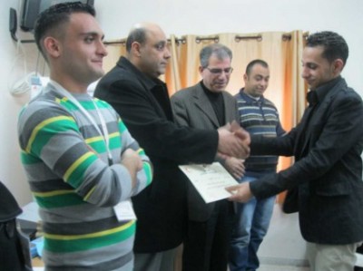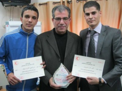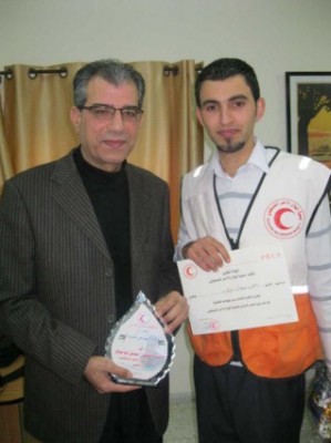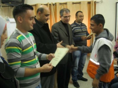 وفي الختام تم توزيع شهادات التقدير على عدد من المتطوعين المميزين، بالإضافة إلى اختيار المتطوع المميز للعام 2012م، وتكريم المتطوع عدنان برهم الذي أصيب خلال تغطيته للأحداث التي رافقت العدوان على غزة، كذلك كرمت إدارة الجمعية منسقي المتطوعين، وكرم المتطوعون كل من مدير الفرع ومنسق