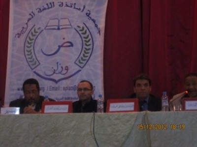نظمت "جمعية أساتذة اللغة العربية" بوزان ـ بمناسبة "اليوم العالمي للغة العربية " الذي قررت منظمة اليونسكو باقتراح من المغرب والسعودية الاحتفال به يوم 18 دجنبر من كل سنة ـ وبشراكة مع النيابة الإقليمية لوزارة التربية الوطنية، ندوة علمية تحت عنوان " اللغة العربية: واقع وتحديات "، وذلك يوم السبت 15 دجنبر 2012 بدار الشباب بوزان. فبعد الاستماع إلى آيات بينات من الذكر الحكيم تلاها الأستاذ محمد أزهر، افتتحت الندوة بكلمة السيد النائب الإقليمي الدكتور نور الدين الدهاج تلاها نيابة عنه الأستاذ محمد زاعيم، تطرق فيها إلى أهمية اللغة العربية، وارتفاع عدد المتحدثين بها، كما أشاد بالاختيار الموفق لجمعية أساتذة اللغة العربية لمحور الندوة .