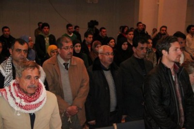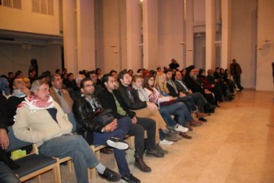اختتمت الامسية بوصلة موسيقية ملتزمة قدمتها فرقة انجاز الفلسطينية.