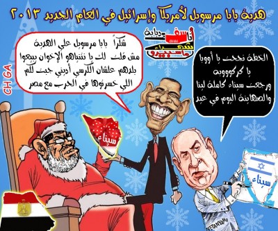 كاريكاتير ساخر لأوباما : هدية بابا مرسويل لأمريكا وإسرائيل عودة سيناء كاملة