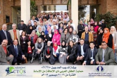 تحت رعاية صاحب السمو الملكي الأمير طلال بن عبد العزيز رئيس المجلس العربي للطفولة والتنمية، عقد المجلس ورشة تدريب المدربين (TOTs) تحت عنوان "حماية الطفل العربي ذي الإعاقة من الإساءة" بدعم وشراكة كل من البنك الإسلامي للتنمية والصندوق الكويتي للتنمية الاقتصادية العربية وجامعة الدول العربية وبرنامج الخليج العربي للتنمية "اجفند" والمنظمة الكشفية العربية، وبالتعاون الفني مع المركز الدولي للتدريب وجودة الخدمات، وذلك خلال الفترة من 16 – 20 ديسمبر 2012 م بمقر المركز الكشفي العربي بالقاهرة.