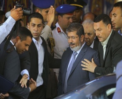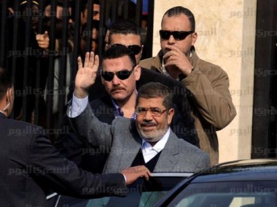 بالصور.. مرسي يخرج مسرعاً عقب صلاة الجمعة.. وحرّاسه "حفاة"