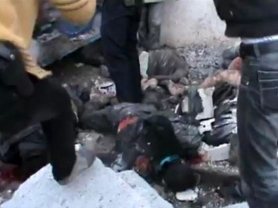ونشر الناشطون فيديو يبين المجزرة التي يصعب متابعتها، مع انتشار الأشلاء والجثث على الأرض وتراكض الناس لمحاولة إنقاذ أو ربما لملمة ما بقي من أشلاء هنا وهناك.