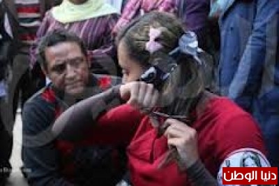 فتيات وسيدات يقمن بقص شعورهن فى ميدان التحرير أمس احتجاجاً على الدستور الجديد