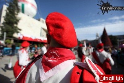 أعلام فلسطين وأعلام المجموعات الكشفية ورفرفت في شوارع المدينة، حيث توجهت المجموعات