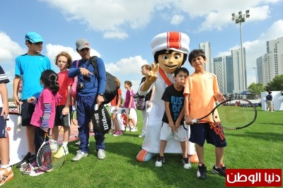 منصور يتفاعل مع الأطفال في بطولة مبادلة العالمية للتنس