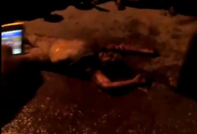 ممنوع دخول اصحاب القلوب الضعيفة +18 .. متظاهري سوريا يمثّلون بجثة لأحد شبيحة الأسد